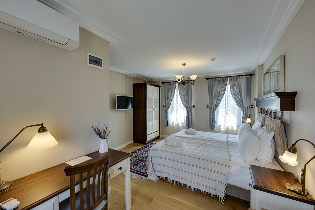 Some of our rooms have bay windows (Cumba) with sofa beds as frequently used in traditional Turkish architecture and authentic handicrafts, carpets, rugs, copper / silver and hand weaves are evident through the whole hotel.