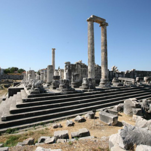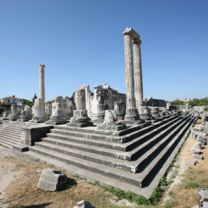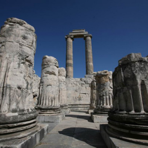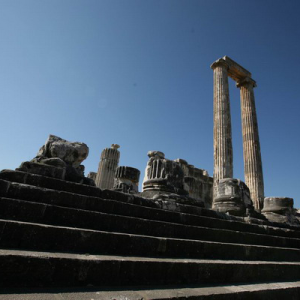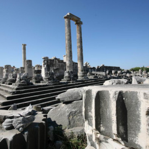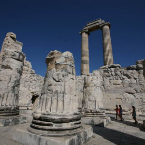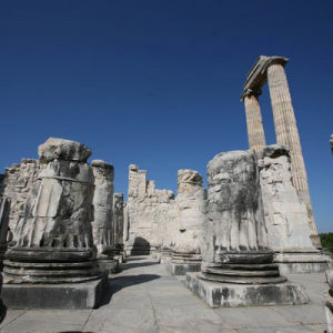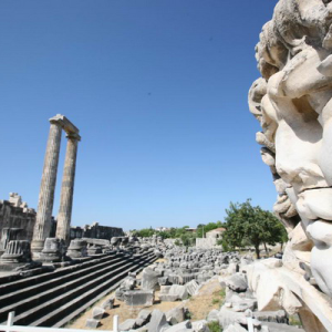 The ancient Didyma, called Didim today, was the most renowned sanctuary of the Hellenic world. It was connected to the great ancient city of Miletus by a 17 kilometer-long Sacred Road. The Temple of Apollo at Didyma, 109 meters long and 51 meters wide, used to be the third biggest temple of the ancient world after the largest one, Temple of Artemis at Ephesus.