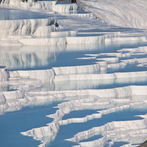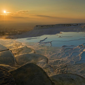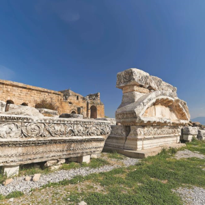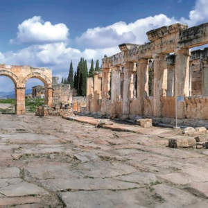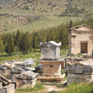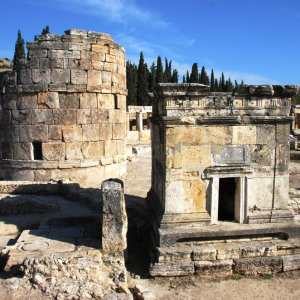 Hierapolis is an ancient city located on the top of Pamukkale and is a World Heritage site. The hot springs of Pamukkale were used as a spa since the 2nd century, people came to Hierapolis to soothe their ailments and often retire and die. Remains of the Greco-Roman period include baths, temple ruins, a monumental arch, a nymphaeum, a necropolis and a theatre. Cleopatra’s pool, according to legend, was a gift from Marcus Antonius . In the 7th Century, an earthquake toppled the surrounding building and the massive marble columns tumbled into the pool – where they rest on the bottom to this day and visitors can swim among them