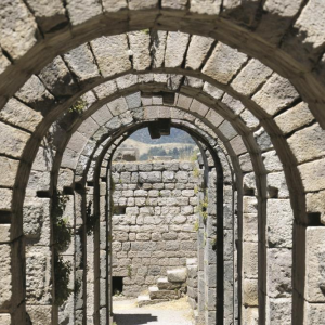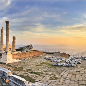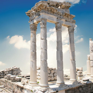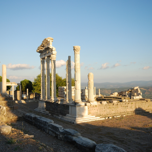 The best-preserved ancient sacred structure on ancient Pergamon’s acropolis is the Temple of Trajan, built during the reign of Emperor Hadrian (117-138 A.D.)